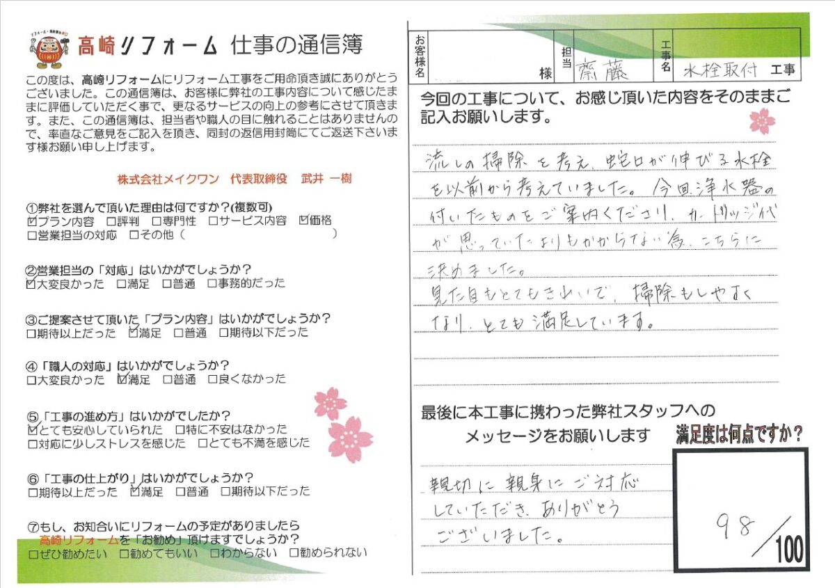高崎市剣崎町 N様邸~<水栓取付工事>~