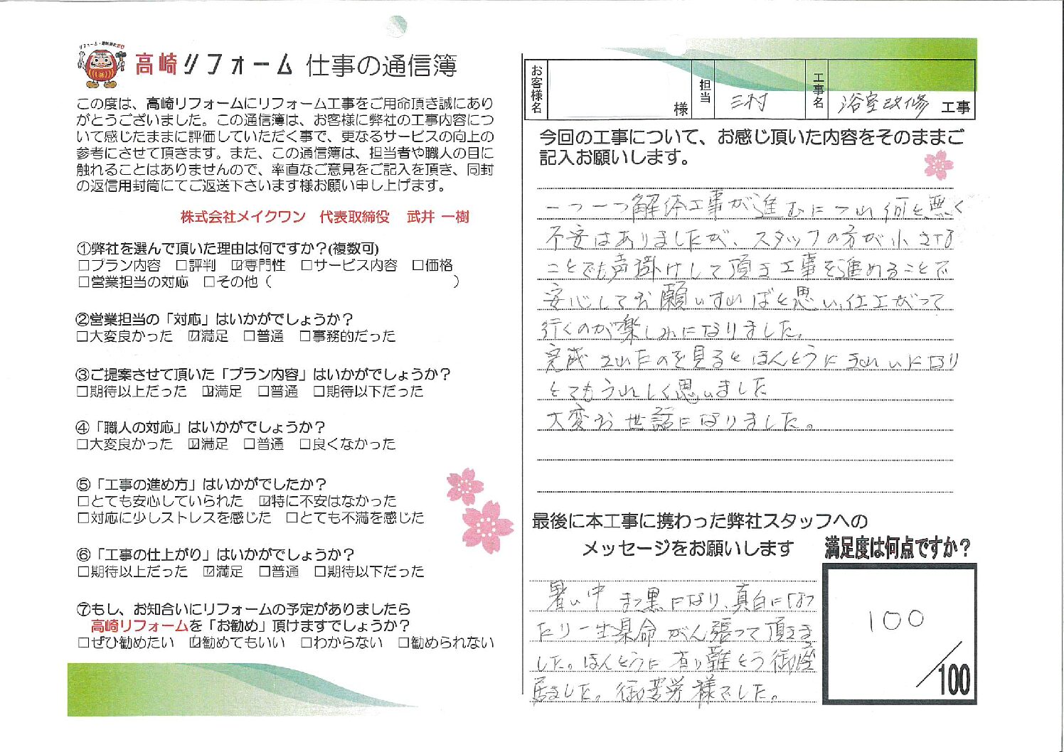 安中市板鼻町 S様邸 ~<浴室リフォーム工事>~