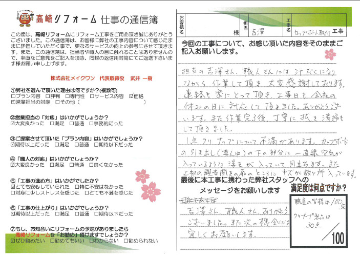 高崎市北久保町 S様邸~<カップボード取付工事>~