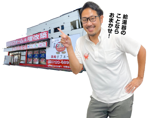 また在庫の大量一括購入など効率化を図っています。一般的なリフォーム店は工事は外注などに頼み、商品の在庫もないため、専門性に乏しく、時間も料金もかかりがちです。高崎リフォームは給湯器専門のスタッフがいるから、営業から工事管理まで一貫して担当。工事も当社専属の職人がいるため安価に対応できます。