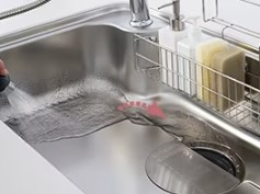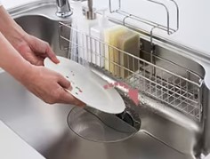 シンク全体をすばやく洗い流せるため、お手入れにかかる時間を短縮。使用する水の量も低減できます。