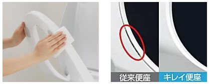 汚れが入りやすい便座のつぎ目がありません。さらに便座裏は防汚素材で、汚れもサッとひと拭き。お掃除ラクラク。